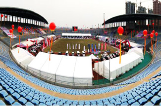 體育賽事篷房的魅力并不全在于外觀,更在于便捷性。對于不同場地的大小,可以自由組合篷房的間數(shù)和不同賽事的需求。對于場地的地面無論是沙地,草地,水泥地還是如大理石那樣不可破壞的地面,體育賽事篷房可以用膨脹螺絲、鋼釬以及承重盤,使篷房能夠安全穩(wěn)固的進行搭建和使用,保證體育賽事的順利進行。